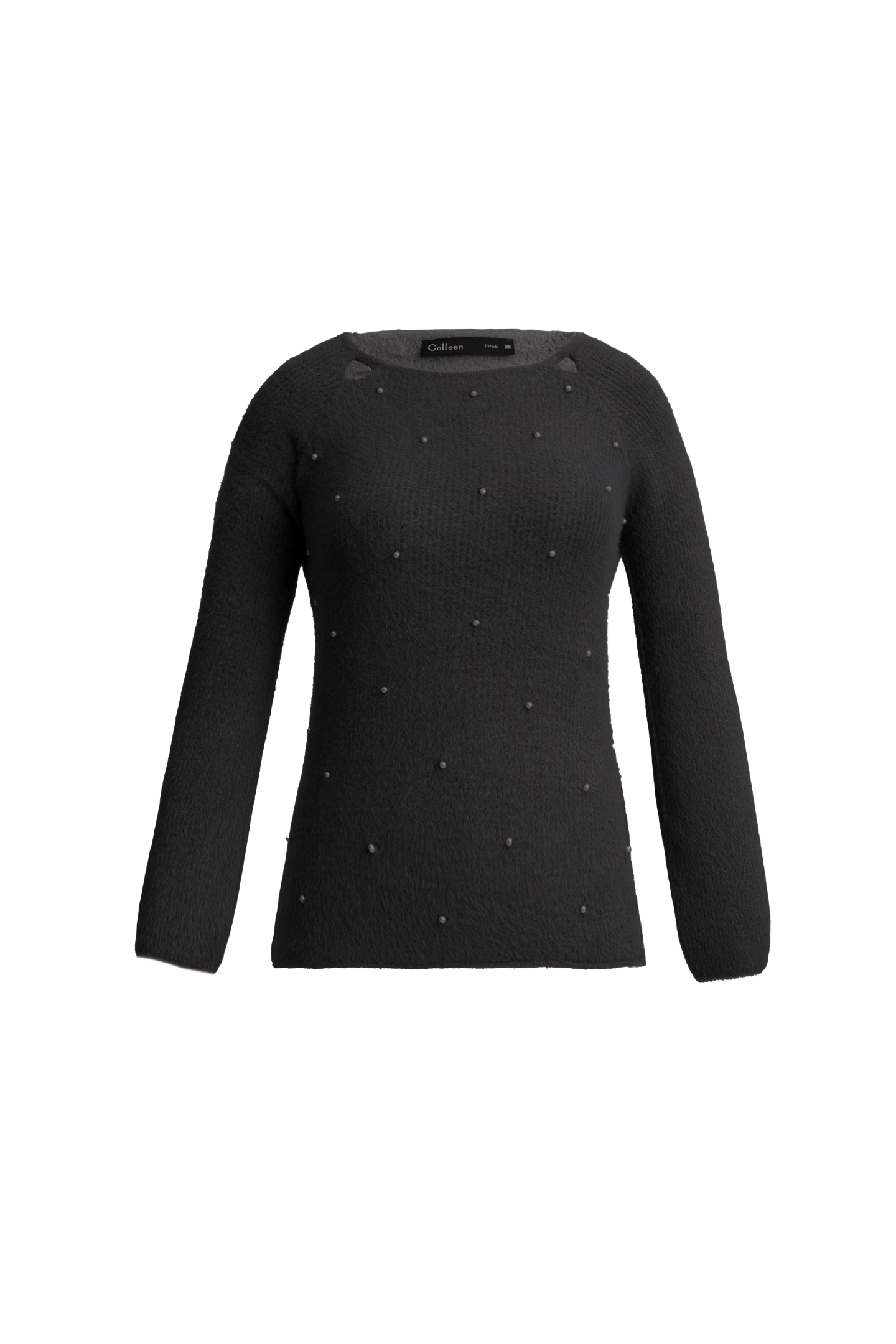 تزئینات مرواریدی روی یقه و بخش جلویی بلوز، جلوهای ظریف و زنانه به آن بخشیده و باعث میشود در استایلهای روزمره و حتی مهمانیهای نیمهرسمی بدرخشد. تنخور این بلوز آزاد و خوشدوخت است و بافت کشسان آن راحتی کامل هنگام پوشیدن را فراهم میکند.