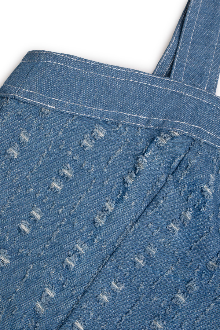 طراحی این تاپ به گونهای است که برای استفاده در بهار و تابستان کاملاً ایدهآل است؛ هم بهتنهایی قابل استفاده است، هم در ترکیب با یک شومیز نازک یا کت سبک. بافت جین تنفسپذیر آن، هم ایستایی خوبی دارد و هم راحتی در طول روز را تضمین میکند.