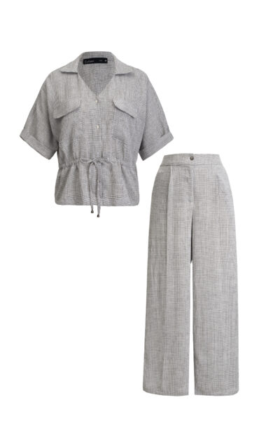 رنگ سرمهای این مدل، انتخابی هوشمندانه برای ساختن استایلهایی رسمیتر یا روزمره است. با یک شومیز روشن، کت لنین، یا حتی یک تیشرت ساده، میتوانید ترکیبهایی بسازید که همیشه مرتب، خوشپوش و بهروز باشید.